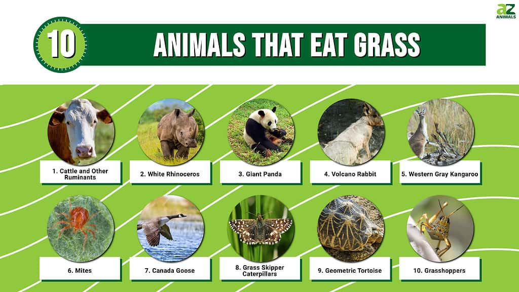 Gli animali qui elencati dispongono di sistemi in grado di abbattere l’erba e quindi beneficiare dei suoi nutrienti. Alcuni possono mangiare principalmente erba e rimanere in salute, mentre altri a volte hanno bisogno di integrare la loro dieta con frutta, semi, foglie o corteccia. Continua a leggere per conoscere 10 animali che mangiano erba.