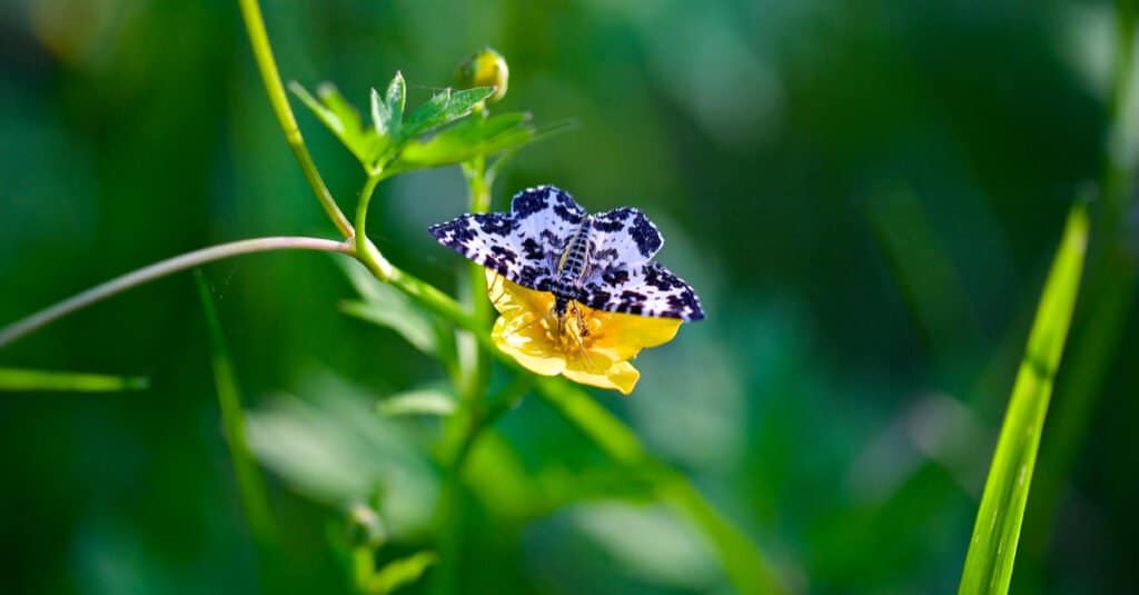 Questa falena inaspettatamente bella si sviluppa da un verme verde oliva ed è quindi un membro del Geometridi famiglia. Si trova nelle foreste temperate e nelle pianure di molti luoghi in tutto il mondo, tra cui Europa, Nord America, Russia e Cina. Le sue ali portano un motivo di pizzo bianco e nero con un notevole motivo a scacchiera ai bordi delle ali.