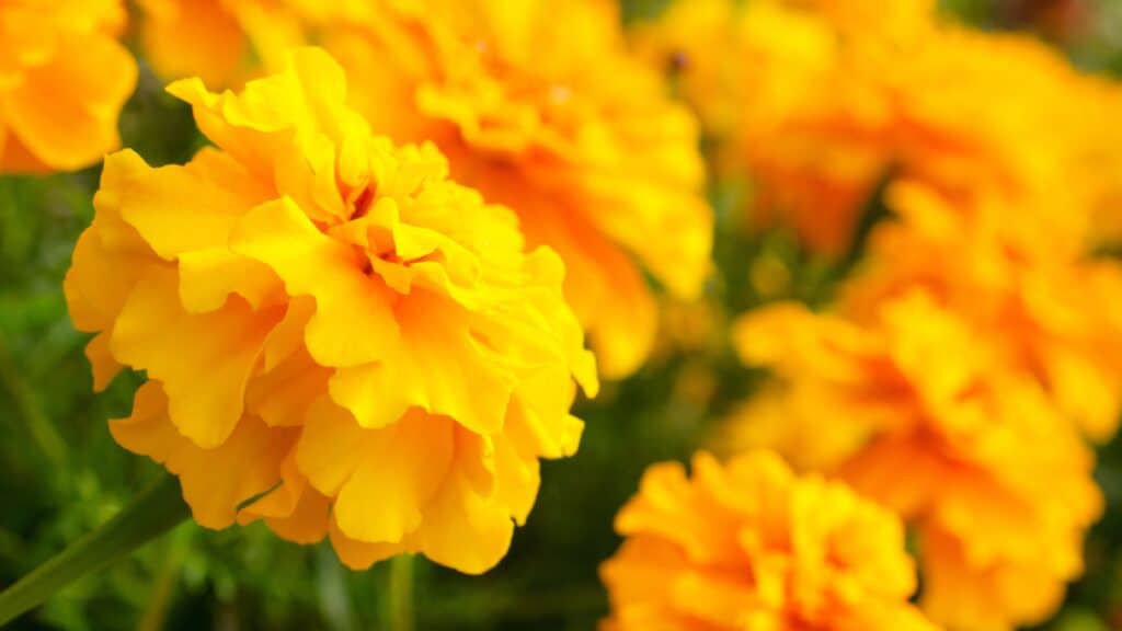 Le piante di calendula africana hanno grandi fiori doppi di colore arancione chiaro o scuro, con fogliame cespuglioso. E questi fiori d’arancio a bassa manutenzione portano una deliziosa fragranza in giardino! L’odore accattivante di questa calendula è dovuto al fatto che l’intera pianta, dai fiori alle foglie, ha un gradevole profumo speziato.