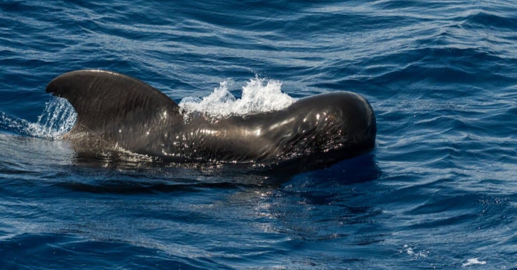 Questi eleganti animali neri dalla testa di melone sono in realtà delfini, non balene, nonostante il loro nome. Sono famosi per essersi bloccati in numero. Gli scienziati non sono sicuri del motivo per cui questi mammiferi marini lo fanno, anche se si pensa che sia associato a test navali subacquei di onde sonore a bassa frequenza che interrompono la capacità del delfino di navigare attraverso la loro ecolocalizzazione.