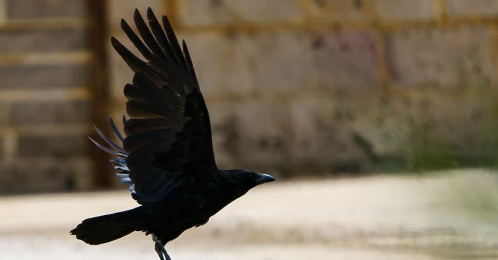 Gregario e molto intelligente, il corvo è uno dei più comuni tra i passeriformi, o uccelli canterini, anche se il suo aspro verso non è affatto canoro. I corvi hanno molti tipi di vocalizzazioni oltre al famoso “gracchiare” e possono persino imitare i rapaci. Esistono diverse specie di corvo, tra cui il corvo pesce e il corvo carogna, ma quasi tutti sono animali solidi, di colore nero iridescente. Si riconoscono dai corvi, anch’essi neri, perché sono più piccoli e hanno una corporatura più leggera e un richiamo molto diverso. Non solo le piume, ma anche il becco e le zampe del corvo sono nere. Sebbene di solito vivano circa sette anni allo stato selvatico, si sa che i corvi in cattività vivono fino a 30 anni.