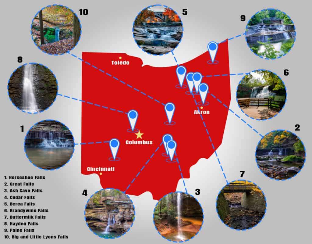 Queste sono le dieci migliori cascate dell’Ohio! Se non vedi l’ora di controllarli tutti, abbiamo fornito anche le loro posizioni.