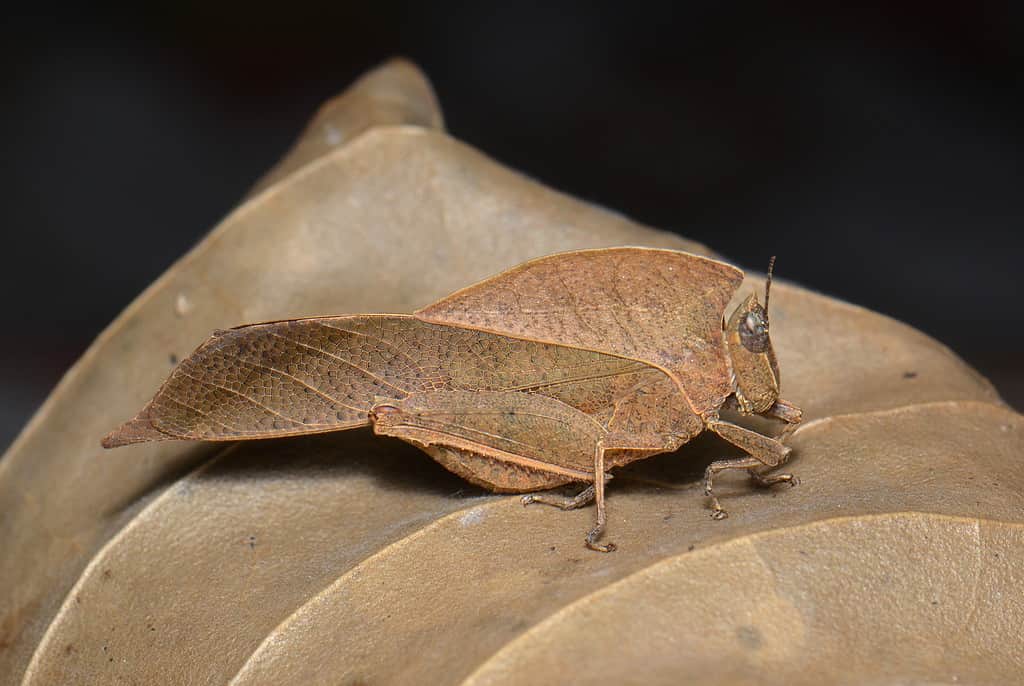 Se la complessità del camuffamento fosse una competizione, allora la cavalletta con le foglie morte porterebbe a casa il primo premio. Anche se un mimetismo molto meno complesso produrrebbe probabilmente gli stessi risultati, l’attenzione ai dettagli presente nell’aspetto della cavalletta foglia morta è davvero impressionante. I lati del corpo della cavalletta foglia morta assomigliano a due foglie morte raggomitolate con venature visibili presenti. Se questo insetto si trovasse in mezzo a un mucchio di foglie, distinguerlo sarebbe quasi impossibile anche per un entomologo esperto. La cavalletta fogliare può essere trovata in India, Malesia e Indocina.
