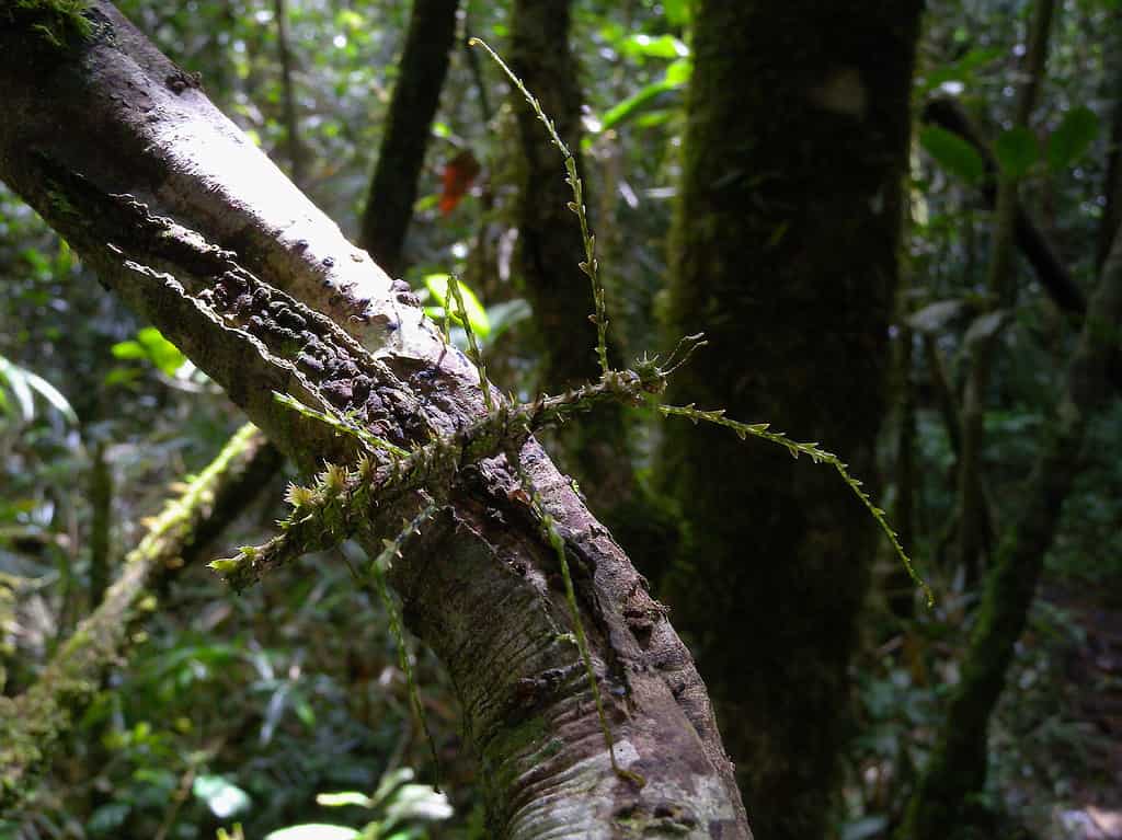 “Insetti stecco” è un termine generico per un numero di insetti che fanno parte dell’ordine Phasmatodea. Questo ordine comprende una varietà di insetti che sembrano tutti incredibilmente simili a bastoncini e foglie, o ad una combinazione dei due. L’insetto stecco che imita il muschio ha un’incredibile somiglianza con un bastone ricoperto di vegetazione muschiosa e si fonde facilmente con qualsiasi ambiente lussureggiante. Questo insetto può essere trovato in Costa Rica, Panama, Colombia e Nicaragua.