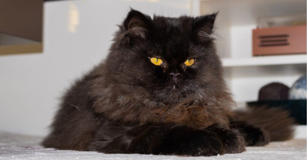 Ci sono un numero limitato di razze di gatti che vengono in mente quando si tratta di pensare a gatti lussuosi, e il persiano è sempre una di queste. E cosa potrebbe esserci di più lussuoso di un persiano nero con occhi blu intenso o rame arancione? Questa razza è contenta di oziare con te, essere dolce e sedersi bene.
