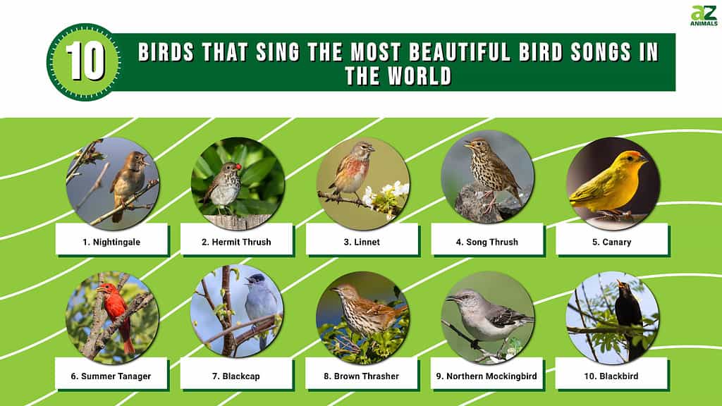 Alcuni uccelli si distinguono per i loro canti melodiosi e belli. Chi sono questi cantanti dotati del mondo degli uccelli? Abbiamo trovato i 10 migliori uccelli che cantano più bene di tutti gli altri.
