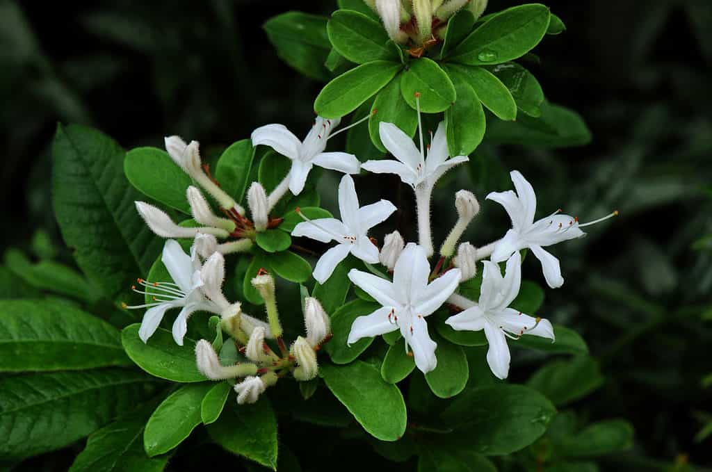 L’azalea di palude è un arbusto deciduo che cresce in terreni umidi ma può anche tollerare condizioni asciutte. Ha fiori rosa profumati in primavera e in estate. I fiori sono larghi circa due pollici e hanno cinque petali ciascuno. Le foglie sono di colore verde lucido ed ellittiche.