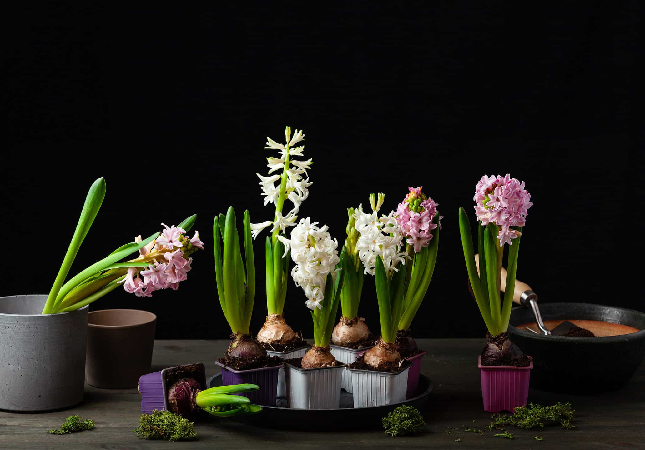 I giacinti provengono dai bulbi. Possono crescere e fiorire nell’acqua così come se piantati nel terreno.