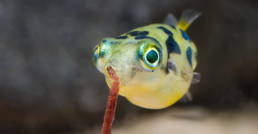 ©Pesce palla nano (Carinotetraodon travancoricus) che si nutre di primi piani/Shutterstock.com