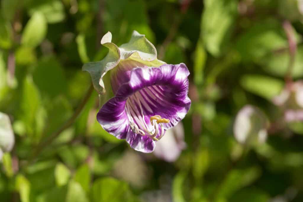 La vite a tazza e piattino, nota anche come campane della cattedrale, è un vigoroso rampicante originario del Messico. Prende il nome dai suoi vistosi fiori, che sembrano tazze che si trovano in grandi piattini di fogliame. I fiori variano di colore dal viola intenso al viola intenso e sono in genere lunghi 2 pollici e larghi 1,5 pollici.