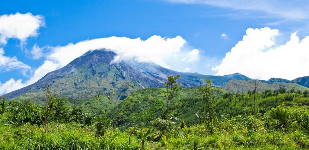 Nell’immagine sopra, puoi vedere un complesso vulcanico dall’Indonesia. Notare quanti punti di sfiato si sono formati nel tempo e la presenza di più picchi.