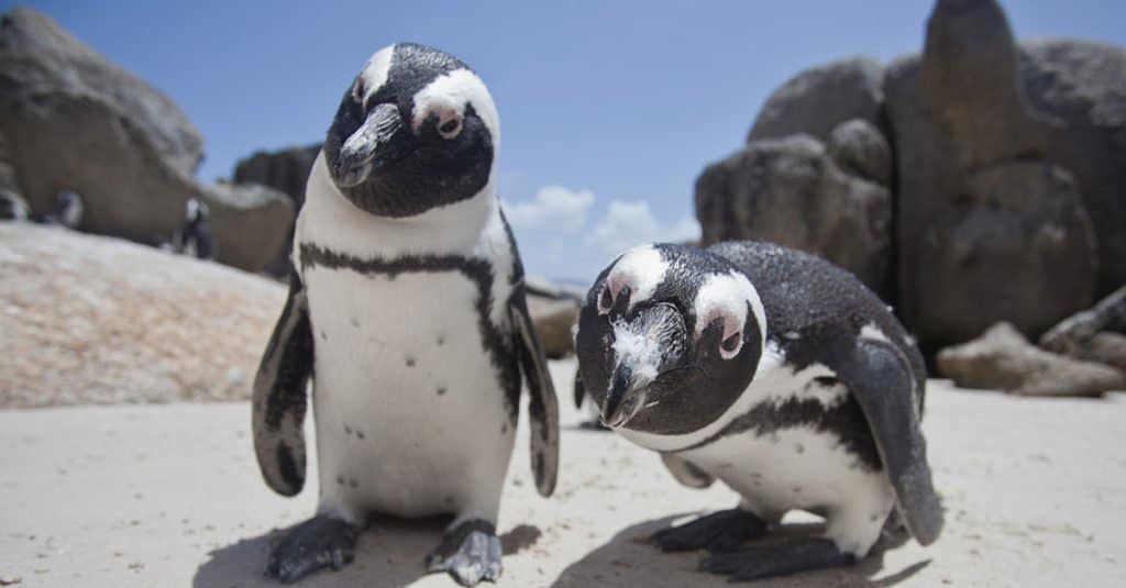 Un altro gruppo di uccelli con denti che non sono denti, i pinguini appartengono alla famiglia Spheniscidae. Complessivamente esistono 18 diverse specie di pinguini, la maggior parte dei quali vive in Antartide o nelle isole circostanti. Inoltre, vivono anche vicino alle coste meridionali del Sud America, dell’Africa e dell’Australia. Mentre alcuni pinguini, come il pinguino imperatore, migrano a grandi distanze, altri vivono negli stessi habitat tutto l’anno. I pinguini sfoggiano corpi eretti affusolati, lunghe pinne, piedi palmati e becchi grandi e appuntiti. Hanno dimensioni variabili da 12 pollici a 4,3 piedi di altezza e tra 3,3 e 41 libbre. Sebbene non possano volare, i pinguini possono nuotare eccezionalmente bene. Al loro massimo, possono nuotare quasi 5,6 miglia all’ora e trattenere il respiro fino a 20 minuti. La loro velocità e abilità in acqua li aiutano a cacciare cibo tra cui pesci, krill e calamari.