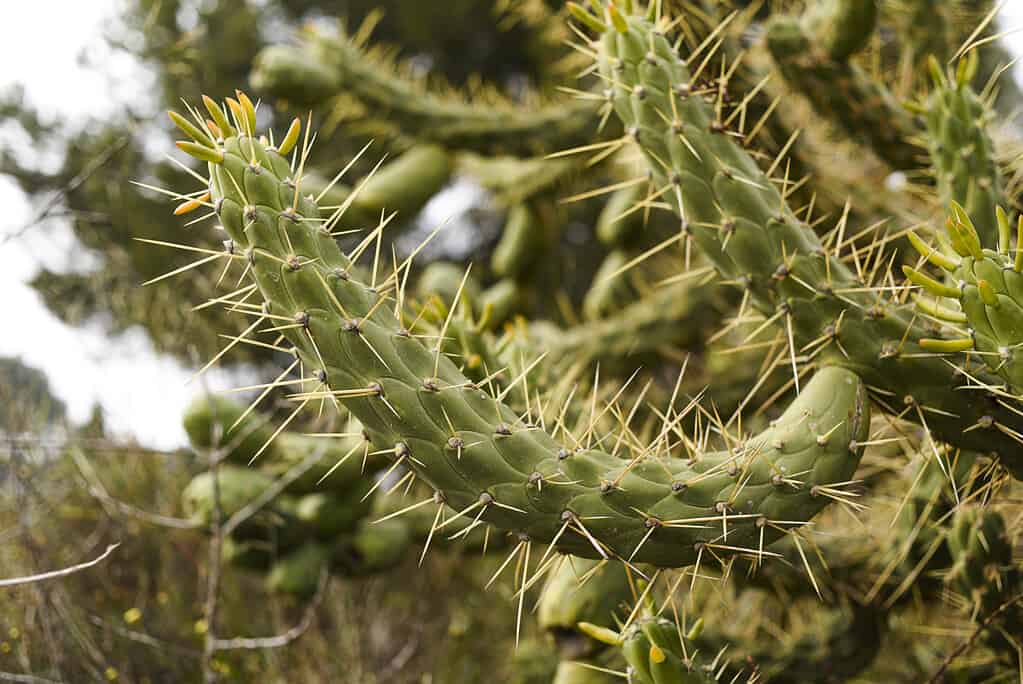 Il Can Cholla, noto anche come “Eve’s Pin Cactus” (Austrocylindropuntia subulata), è un cactus che prospera alle Hawaii. È un arbusto sempreverde con steli cilindrici che crescono fino a 4 piedi di altezza e sono ricoperti di spine. L’altezza complessiva del cactus può raggiungere i 13 piedi di altezza! I rami verde brillante si estendono in tutte le direzioni e i fiori bianchi compaiono sulle punte di questi rami durante la primavera. Questo cactus può essere trovato crescere lungo pendii rocciosi o lungo le strade, e fa meglio in pieno sole con terreno ben drenato. Sebbene questa specie di cactus sia tollerante alla siccità, beneficerà di annaffiature occasionali durante periodi particolarmente secchi. La potatura dovrebbe essere eseguita solo quando necessario, poiché un’eccessiva potatura può danneggiare la forma e la struttura naturale della pianta. Se stai cercando un’aggiunta unica al tuo giardino o cortile, prendi in considerazione l’aggiunta di Can Chollas!