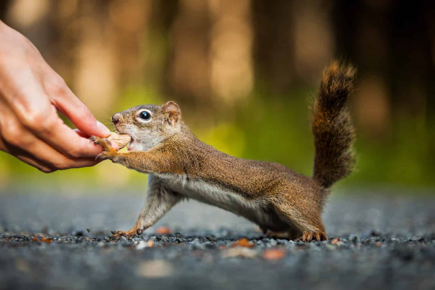 Ora che hai guadagnato la fiducia di uno scoiattolo, potresti abbassare la guardia e lanciarti immediatamente nell’offrire noccioline tra l’indice e il pollice. Non farlo. Saranno sempre nervosi in una certa misura. Non hanno una vista eccezionale davanti al naso o da vicino. I loro occhi sono ai lati della testa come la maggior parte degli animali da preda per fornire loro una visione a 180 gradi nel caso in cui qualcosa si avvicini di soppiatto a loro. Per questo motivo, non possono vedere davanti al loro naso e potrebbero facilmente ed erroneamente morderti in fretta. Se desideri dare da mangiare allo scoiattolo manualmente, fallo inizialmente con qualcosa di grande, come una noce ancora nel guscio, e offrilo nel palmo della mano. Con il passare del tempo, gradualmente sarai in grado di dar loro da mangiare noci più piccole e arriverai al punto in cui entrambi vi fidate abbastanza l’uno dell’altro da darglielo semplicemente senza paura di essere morsi.
