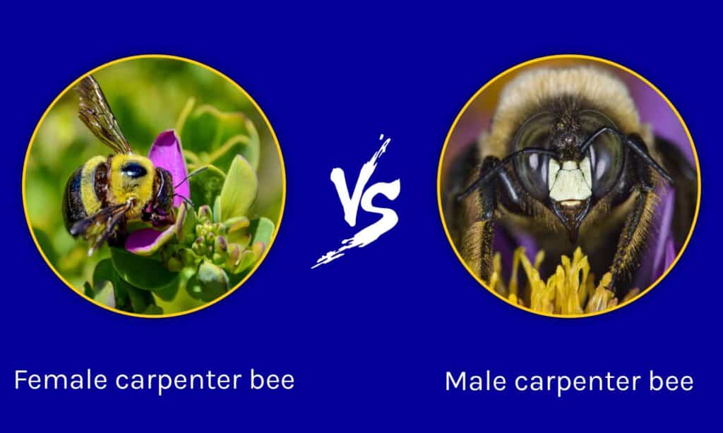 La differenza fondamentale tra un’ape carpentiere maschio e un’ape carpentiere femmina