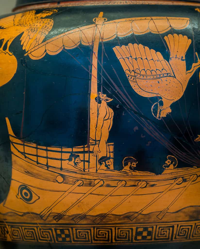Come è noto, Ulisse si legò all’albero della sua nave e riempì di cera le orecchie del suo equipaggio. Ciò gli ha permesso di ascoltare il canto delle sirene senza cadere vittima della loro isola di cadaveri mentre il suo equipaggio era immune al potere del loro canto non sentendolo.
