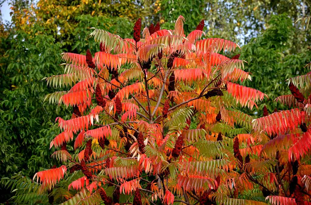 - Foglie: il sommacco velenoso ha foglie lunghe, strette e appuntite. Crescono in coppia lungo il fusto, con una sola foglia all’estremità. Le foglie hanno una superficie liscia e lucente e un bordo leggermente ondulato. Sono disposti in uno schema simile a una piuma.