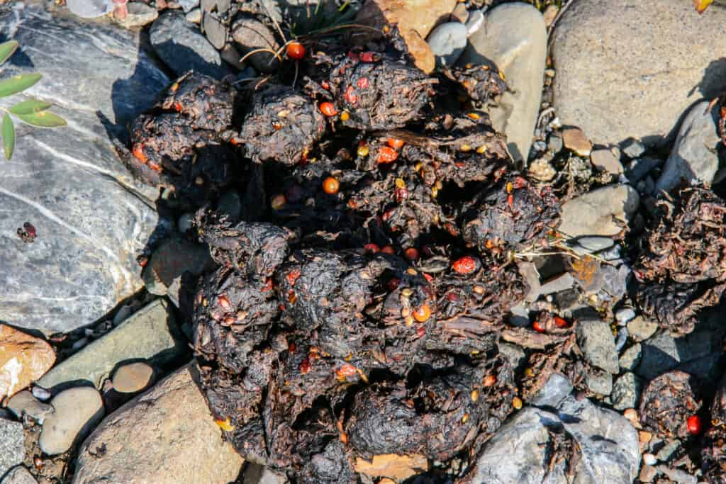 A seconda di ciò che mangia l’orso grizzly, i suoi rifiuti possono contenere vegetazione, bacche, resti della sua preda e parti di lombrichi.