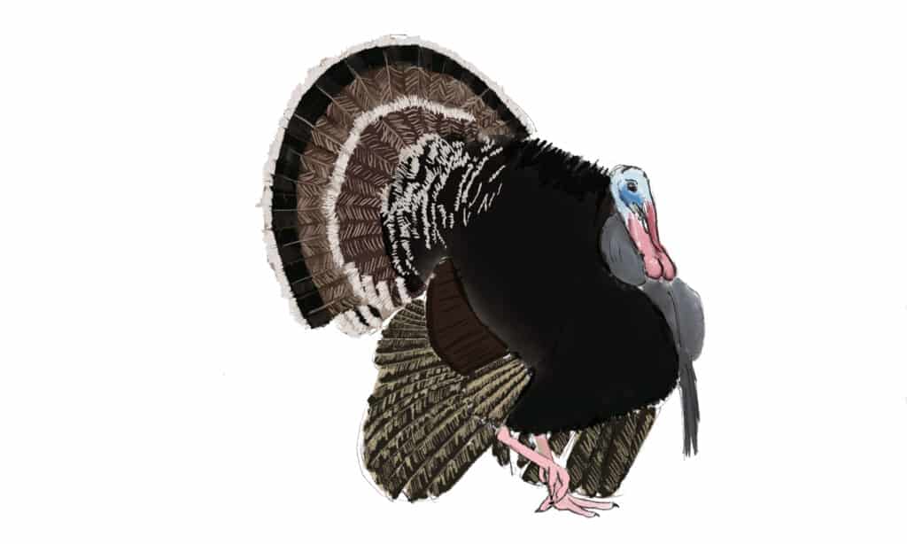 Anche se adoro i progetti artistici e artigianali sui tacchini dei bambini, ho deciso che, piuttosto che contribuire all’abbondante numero di quel tipo di arte, volevo offrire un tacchino più realistico da disegnare. Per i tutorial, faccio tutto il lavoro in Photoshop con una tavoletta grafica Huion. Semplifica la separazione di ogni passaggio perché posso lavorare a strati. Se lo stai facendo digitalmente, usa i livelli. A parte il pulsante magico “annulla”, i livelli sono uno dei maggiori contributi che Photoshop ha apportato all’arte digitale. Tuttavia, se preferisci la carta (cosa che sicuramente faccio la maggior parte del tempo), disegna leggermente ogni passaggio. Dovrai essere in grado di cancellare e regolare le linee che necessitano di un piccolo miglioramento.