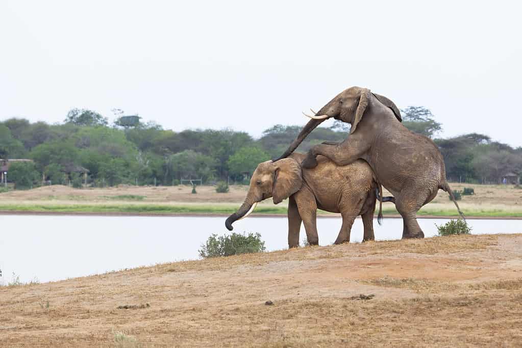 L’accoppiamento negli elefanti avviene spesso durante il ciclo di calore femminile. I maschi hanno bisogno di esperienza, dimensioni e forza per montare le femmine. La parte dell’esperienza è importante in quanto il maschio deve sapere dove mettere il suo lungo pene ricurvo nel tratto riproduttivo femminile, anch’esso lungo e ricurvo.