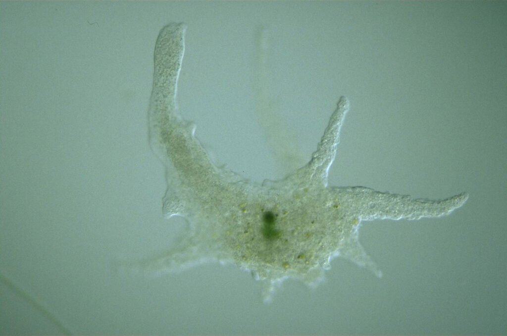 Alcune grandi forme di amebe hanno batteri e alghe all’interno del loro citoplasma. Questi organismi hanno una relazione simbiotica con le amebe come loro ospiti. Dictiostelio discoideum è una specie particolarmente interessante di muffa melmosa. Queste sono amebe sociali che vivono nel suolo e che hanno sviluppato una forma speciale di simbiosi. Un articolo su Natura descrive questa incredibile ameba che coltiva batteri. L’ameba individuale si unisce per formare un organismo multicellulare, “simile a una lumaca”. Questo organismo è in grado di spostarsi in nuovi luoghi quando le risorse nel suo habitat sono scarse. Questa specie di muffa melmosa non arriva nella sua nuova casa a mani vuote, in realtà porta con sé il batterio che ha mangiato! Questo batterio viene seminato nel nuovo habitat e prospera, fornendo una fonte stabile di nutrimento.