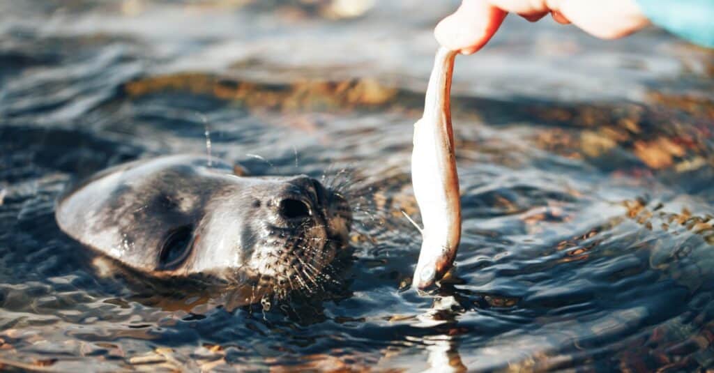 La dieta della foca antartica è principalmente krill, ma è noto che mangiano pinguini. È noto che le foche del porto mangiano anatre e che le foche grigie mangiano focene. Queste focene possono crescere fino a oltre sei piedi di lunghezza e pesare 168 libbre, ma i tori di foca grigia cresciuti sono più grandi. Possono essere lunghi più di sette piedi e pesare 680 libbre.