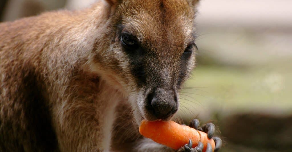 Tuttavia, forse il canguro antico più terrificante era dalle tempeste. dalle tempeste vissuto durante il tardo Oligocene e il Miocene (circa 25-50 milioni di anni fa). Il loro nome deriva da una lingua indigena australiana e significa “dente potente”. Un tipo di canguro ratto, dalle tempeste galoppava piuttosto che saltellare e sarebbe stato uno spettacolo incredibilmente spaventoso basato sui teschi che sono stati trovati. Avevano denti allargati nella mascella inferiore che sporgevano in avanti e gli è valso il soprannome di “canguro assassino”. Si ritiene che abbiano pugnalato la loro preda con i loro lunghi denti e poi li abbiano tenuti con le zampe anteriori mentre li mangiavano. Tuttavia, anche se sicuramente mangiavano carne, in realtà si ritiene che fossero onnivori poiché vivevano nelle foreste pluviali.