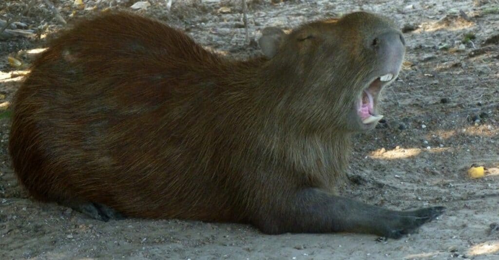 Gli incisivi del capibara possono crescere più di 8 centimetri di lunghezza e, se crescono più a lungo del necessario, ciò può impedire loro di mangiare correttamente il cibo, il che può portare alla fame e alla malnutrizione.