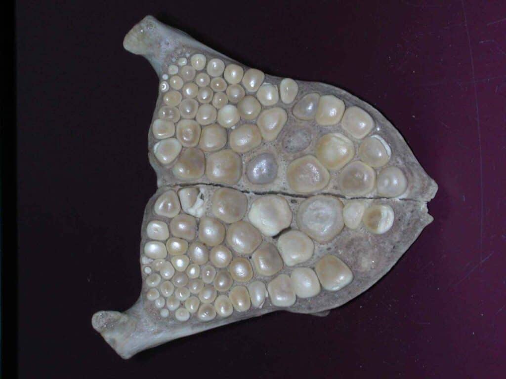 Per quanto riguarda l’aspetto, il pesce tamburo può sembrare un tipico tipo di pesce. Hanno circa 275 specie che abitano sia in acqua dolce che in mare e sono disperse in varie località in tutto il mondo. Tuttavia, nonostante la loro facciata, il pesce tamburo non è in realtà un pesce normale perché i denti del pesce tamburo sono unici e sono più strani di qualsiasi altro nell’oceano. A differenza della maggior parte dei pesci carnivori che possiedono denti seghettati che rivestono le mascelle, i pesci tamburo hanno innumerevoli molari che schiacciano il guscio che non sono visibili ad occhio nudo.