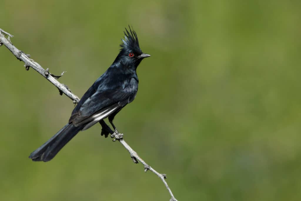 Il phainopepla settentrionale è un uccello di taglia media della famiglia dei pigliamosche. Questa specie è snella con una cresta distintiva, una lunga coda e un becco corto e sottile. I maschi adulti hanno piume nere lucide e macchie alari bianche visibili solo durante il volo. Le femmine sono grigio-argentee con macchie alari grigio chiaro; entrambi i sessi hanno gli occhi rosso scuro. Il phainopepla vive principalmente in America centrale, ma può estendersi fino a nord fino alla California, allo Utah e al Messico. I loro habitat includono la macchia del deserto, il mesquite e le colline ai piedi delle querce. Curiosità: il loro cibo preferito è il vischio del deserto!
