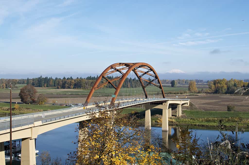 Sauvie Island Bridge attraversa il canale Multnomah. L’isola ha il fiume Columbia a est, il canale Multnomah a ovest e il fiume Willamette a sud.