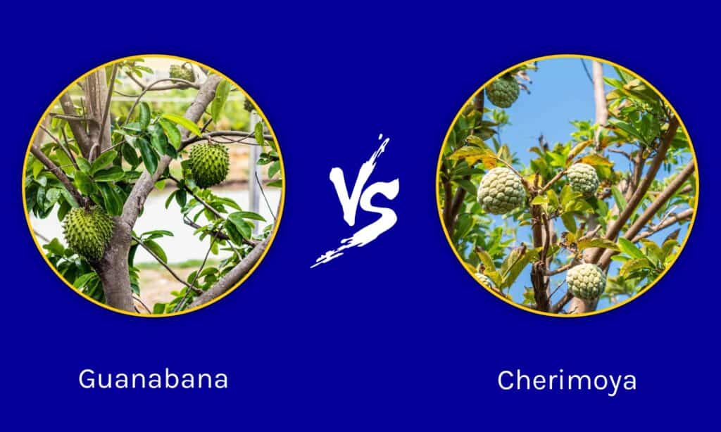 Sebbene i frutti di guanabana e cherimoya siano in qualche modo a forma di cuore, la cherimoya è leggermente più piccola e più conica, mentre la guanabana è più grande e più o meno di forma ovale. Per quanto riguarda il gusto, il frutto di cherimoya è dolce e simile a una caramella, con un sapore che la maggior parte delle fonti ha descritto come simile a quello di fragola, pesca, papaia, ananas o banana. D’altra parte, la guanabana ha un gradevole sapore subacido e simile alla crema pasticcera che è stato paragonato a un incrocio tra una banana e un ananas.