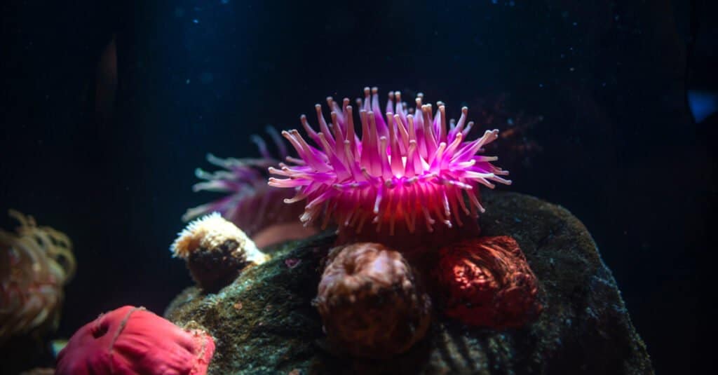 Questo piccolo anemone di mare simile a un fiore si trova dal Regno Unito fino al Mar Mediterraneo e lungo tutta la costa atlantica dell’Africa. Ha un corpo rosso scuro con ben 192 tentacoli rosso chiaro o addirittura rosa. Questi tentacoli possono ritrarsi completamente, lasciando una macchia rossa o arancione. Questa capacità è utile poiché l’anemone si trova spesso nelle pozze di marea dove la marea non arriva per lunghi periodi. Quando i tentacoli sono aperti, si possono trovare minuscole perle blu proprio sotto di loro. Queste perle sono chiamate acrorhagi e contengono le cellule pungenti dell’anemone. Tuttavia, le persone a volte tengono gli anemoni beadlet negli acquari domestici.