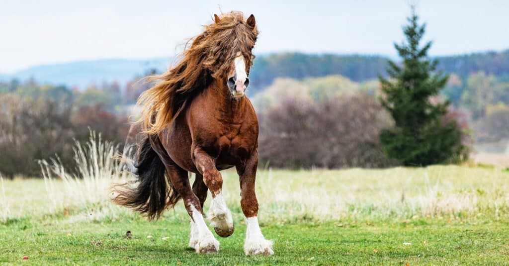 Con un’altezza da 16 a 18 mani e fino a 2.400 libbre, la Contea d’Inghilterra è stata a lungo un campione agricolo e di traino di carri. Ma questi cavalli erano popolari anche tra gli eserciti del mondo che li utilizzavano come cavalli da guerra, a partire dal re Enrico VIII. Gli Shire hanno un corpo forte e muscoloso che li fa eccellere nel loro lavoro quotidiano e sui campi degli eventi. In effetti, è stato uno Shire a stabilire l’attuale record mondiale per il maggior peso mai trainato da un cavallo nel 1924. Quel membro di questa razza ha tirato un incredibile 58.000 libbre.