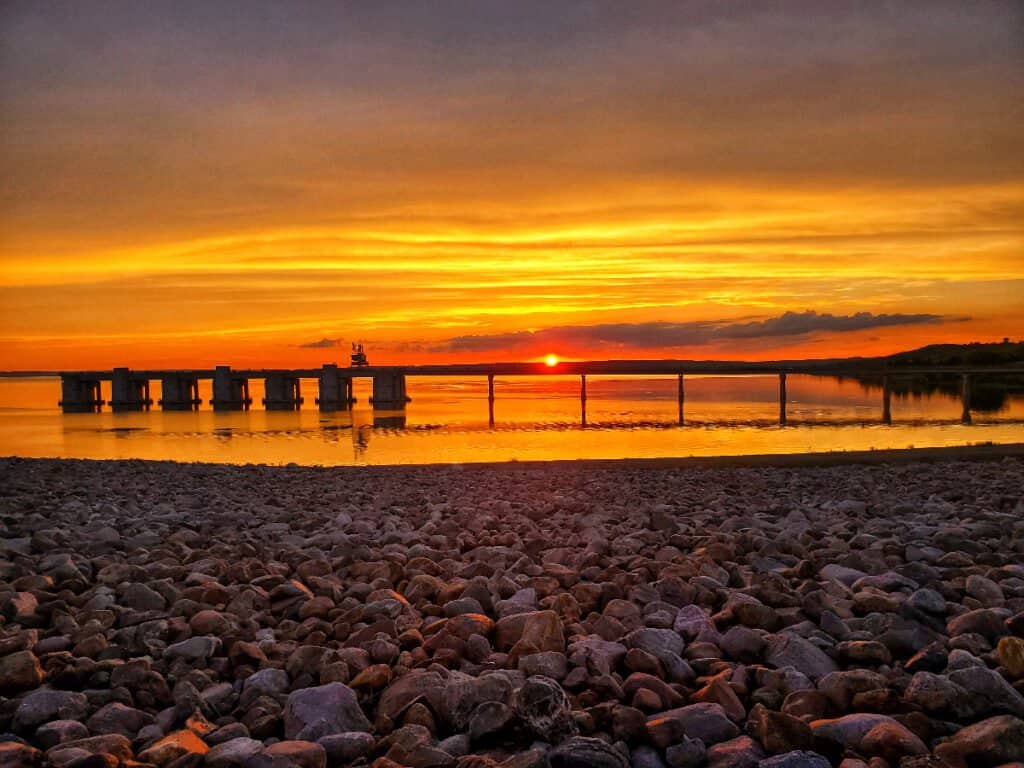 Il lago Oahe è il quarto lago artificiale più grande degli Stati Uniti, con una capacità totale di 23.500.000 acri-piedi. Copre una superficie totale di 374.000 acri e si estende per miglia 231 attraverso il South Dakota. Il serbatoio è stato costruito per fungere da controllo delle inondazioni e fornire energia idroelettrica, irrigazione, attività ricreative, benefici per la navigazione e habitat per diversi animali selvatici. È stato creato dalla diga di Oahe, che è alta 245 piedi e lunga 9,360 piedi ed è la quinta diga più grande del pianeta in base al volume d’acqua. Il lago Oahe può essere artificiale, ma ospita un ricco ecosistema che include molti pesci d’acqua dolce come glaucomi, lucci, pesci gatto, branzini e salmoni. Quasi 1,5 milioni di persone visitano il bacino ogni anno.