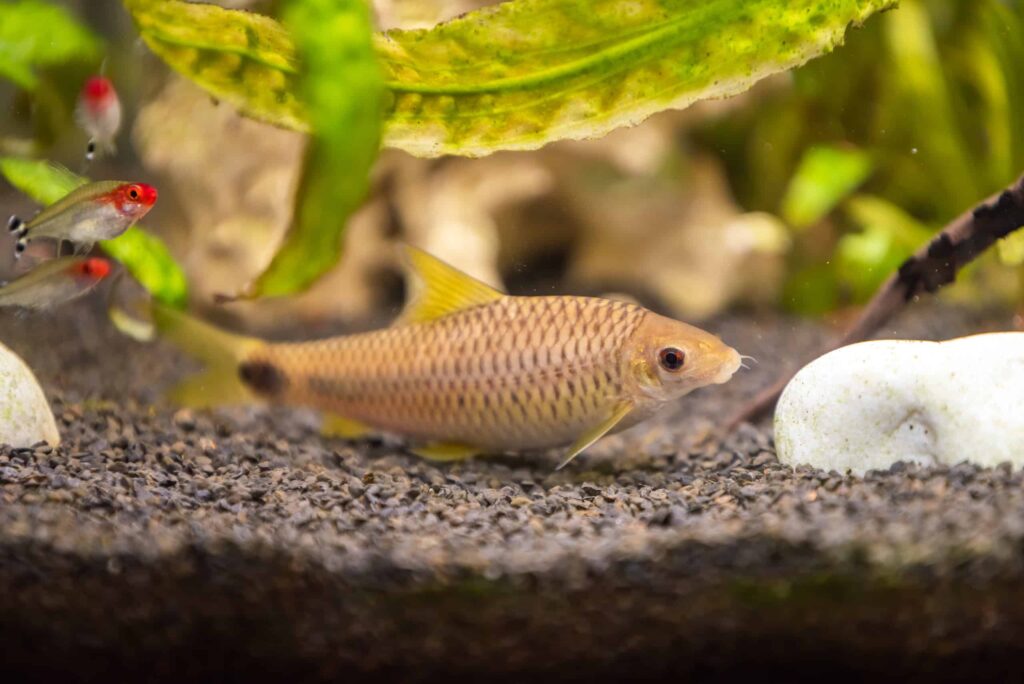 Per garantire che questi due tipi di pesci vivano in armonia, assicurati che ci siano molti posti in cui nascondersi. Puoi posizionare piante e caverne nella vasca per mantenere un buon confine fisico tra entrambe le specie. Nel complesso, gli squali dalla coda rossa sono un compagno di vasca facile e affascinante per i tuoi ciclidi grazie alle loro esigenze e personalità simili.