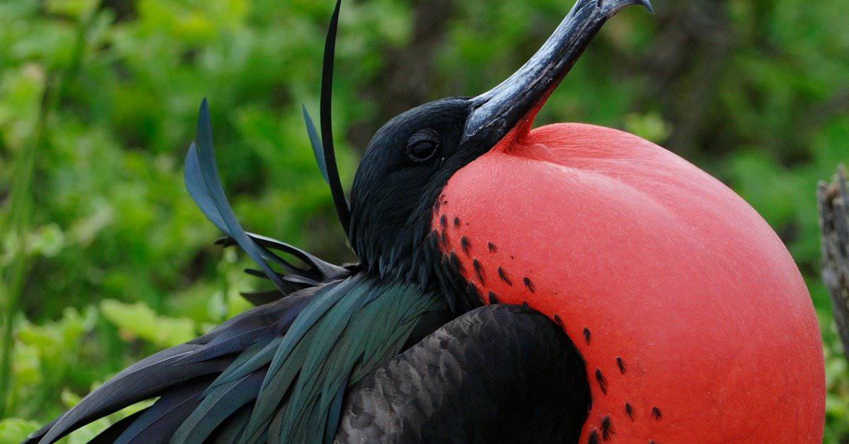 La magnifica fregata è la specie di fregata più grande con un’apertura alare di 7-8 piedi. Gli uccelli adulti sono tutti neri e i maschi hanno grandi sacche rosse sul collo. Durante la stagione degli amori, gonfiano queste sacche per attirare le femmine. Le fregate non hanno piume impermeabili, quindi non si immergono sott’acqua per procurarsi il cibo come gli altri uccelli marini.