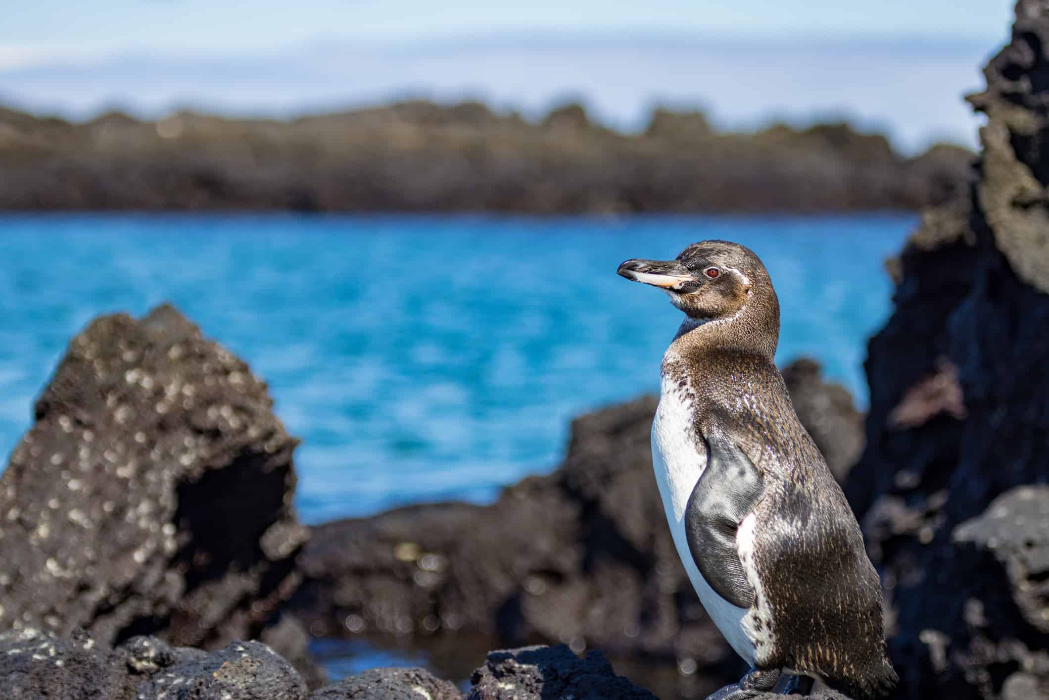 Il pinguino delle Galápagos è l’unica specie di pinguino che si trova a nord dell’equatore. L’uccello endemico è la terza specie di pinguino più piccola al mondo e il più piccolo pinguino sudamericano. Sono nuotatori veloci e possono raggiungere velocità fino a 15 miglia all’ora.
