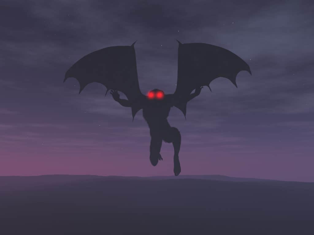 Era una notte misteriosa e tempestosa quando apparve per la prima volta l’Uomo Falena. Testimoni affermano che la creatura era alta quasi sette piedi, con ali che si estendevano per 10 piedi o più. I suoi occhi erano rossi e luminosi e avevano una faccia strana, quasi umana. Alcuni dicono che l’Uomo Falena sia un presagio di morte e credono che il suo aspetto prefigurasse il crollo del Ponte d’Argento.