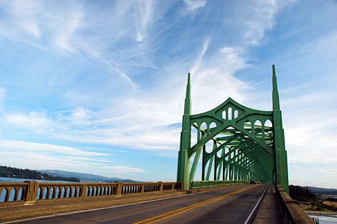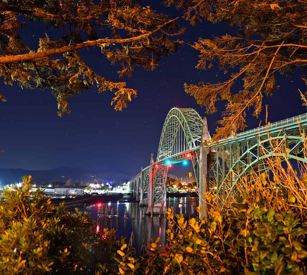 Situato a Newport, nell’Oregon, il Yaquina Bay Bridge è alto 133 piedi. Tuttavia, gli archi distintivi sono alti ben 246 piedi. Come molti altri ponti dell’Oregon, lo Yaquina Bay Bridge è stato progettato da Conde McCullough. Si trova anche sulla US Route 101 e attraversa la baia di Yaquina. È un ponte ad arco con un’arcata principale che sovrasta la carreggiata. Altri archi forniscono supporto dal basso e continuano per l’intera lunghezza del ponte. La gente del posto chiama affettuosamente il ponte la Signora Verde per via della vernice verde sugli archi.
