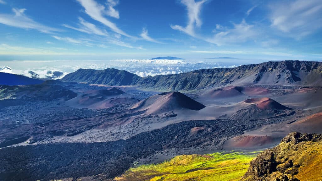 Haleakala, pronunciato “hah-le-ah-kah-lah”, è un vulcano a scudo situato sull’isola di Maui. Il suo nome significa “Casa del Sole”. Dei cinque vulcani dell’isola di Maui, questo è l’unico dormiente e non morto. Si ritiene che questo vulcano abbia eruttato circa 400-600 anni fa. Mentre ora è dormiente, potrebbe scoppiare di nuovo in qualsiasi momento. Haleakalā è un vulcano a scudo che spinge la lava verso l’esterno e sopra le terre. Questo è il numero di isole che si formano, iniziano come vulcani a scudo e si accumulano nel corso di migliaia di anni.