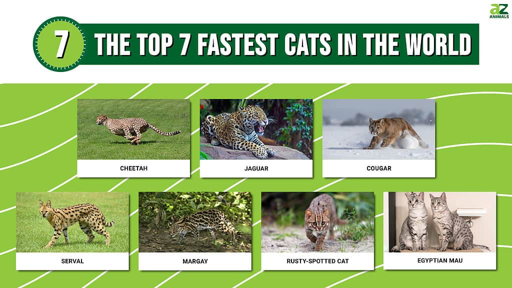 Anche se i gatti domestici sono generalmente più piccoli dei loro fratelli selvatici, possono essere altrettanto abili nell’inseguire, nell’inseguire e nel catturare le prede. L’elenco dei gatti più veloci del mondo è composto principalmente da grandi felini selvatici, ma continua a leggere per scoprire qualche sorpresa!