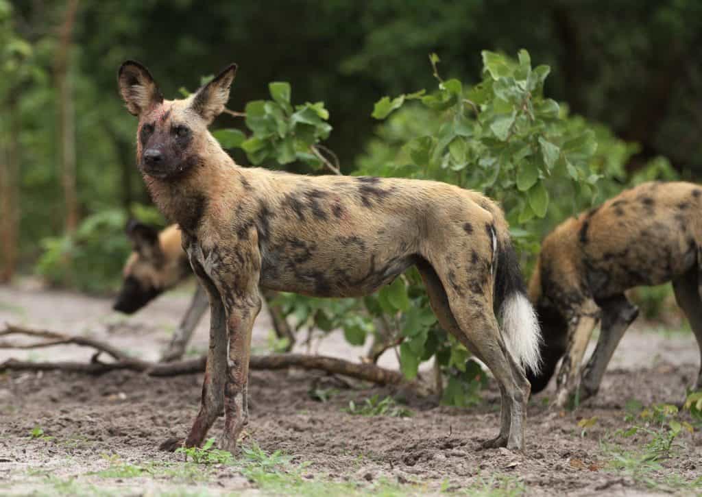 Un cane selvatico africano a Savuti, Chobe National Park, Botswana.