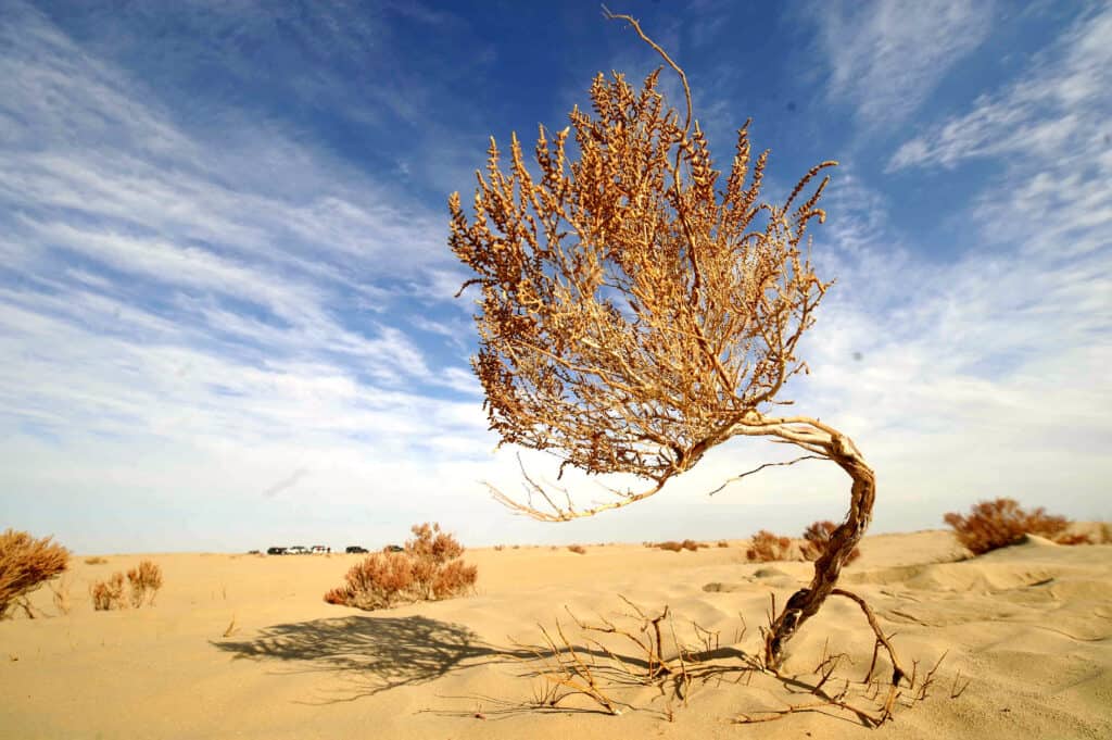 Sabbia in movimento, pochissima acqua, vegetazione estremamente scarsa, copertura vegetale bassa, pericoloso da attraversare, esplorato da diversi scienziati, ecoregione cinese