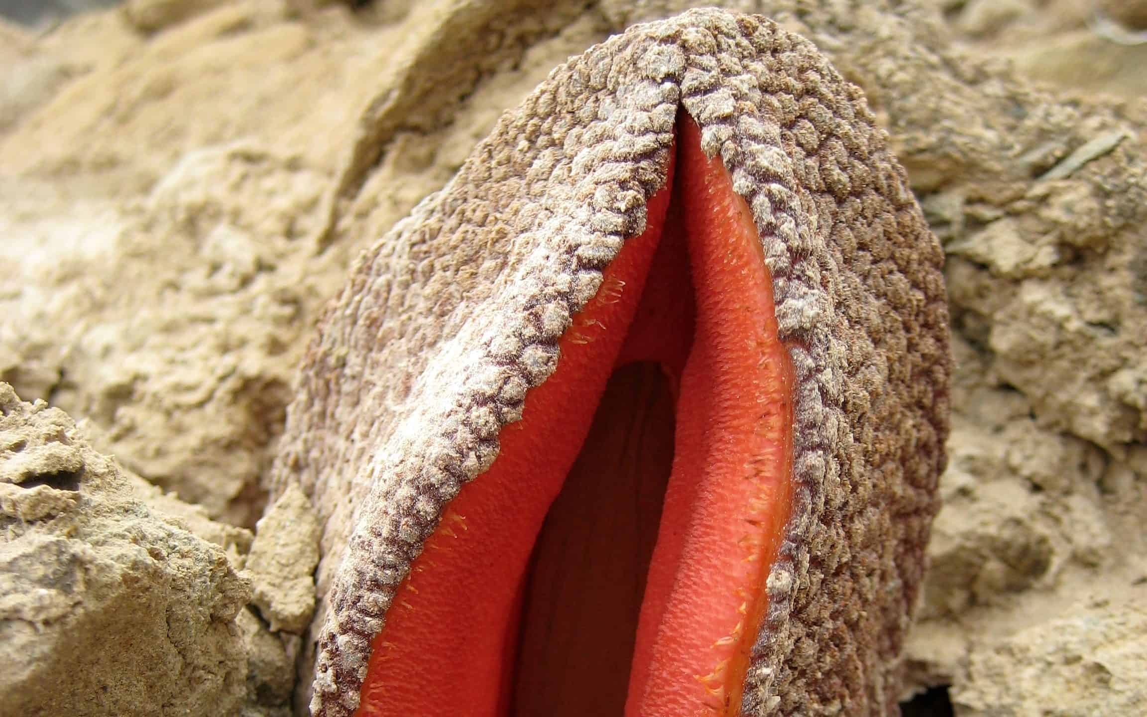 Questa pianta è una pianta parassita chiamata anche cibo per gli sciacalli. La maggior parte della pianta si trova sottoterra, ma il suo fiore, che ricorda lunghe lingue dall’aspetto di melone, è fuori terra. Questo fiore emette anche un odore che ricorda le feci. Ciò attira gli impollinatori come gli scarabei stercorari e gli scarabei delle carogne.