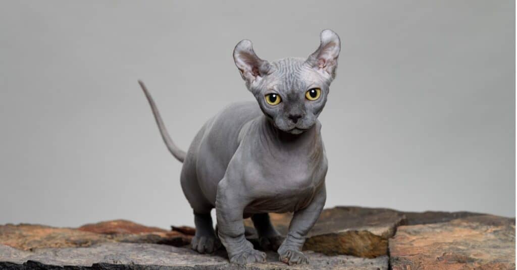 Il nome “dwelf” è un portmanteau di nano ed elfo – un riferimento sia alla sua statura nana che alle sue bizzarre caratteristiche elfiche. I suoi grandi occhi, le caratteristiche facciali uniche e il corpo glabro provengono dai suoi antenati sphynx, mentre prende il suo piccolo comportamento dal gatto munchkin. Il tipico dwelf è alto solo mezzo piede e pesa meno di dieci libbre. Ma questi animali non sarebbero quello che sono senza le loro orecchie stranamente contorte, risultato della mescolanza del ricciolo americano nella piscina riproduttiva. Per aggiungere ancora più confusione a questo strano mix di caratteristiche, il dwelf è noto per avere una personalità grande e vibrante che viene spesso paragonata alla cordialità di un cane. E poiché si tratta di una razza che non perde pelo, non devi preoccuparti che un dwelf scateni le tue allergie.