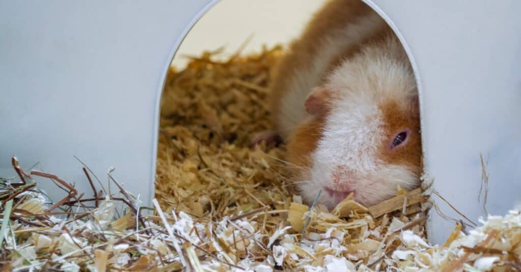 Naturalmente, una cavia può semplicemente scavare un buco poco profondo nei suoi trucioli come un posto dove può sistemarsi per dormire. Ogni porcellino d’India ha le sue preferenze per dormire.