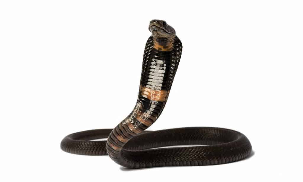 I cobra sputatori dal collo nero del fiume Congo crescono fino a sette piedi di lunghezza. Sono quasi interamente neri, ad eccezione di alcuni chiari segni sul lato inferiore. Inoltre, come il cottonmouth nordamericano, mostrano interni bianchi luminosi. Capaci di uccidere gli umani con il loro veleno, questi serpenti possono sia sputare che iniettare veleno. Sono noti per difendersi in modo aggressivo e non esitano a sputare per legittima difesa. I cobra sputatori dal collo nero mangiano principalmente piccoli mammiferi.