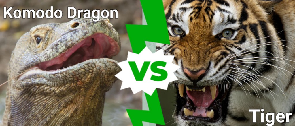 Le tigri sono troppo grandi, veloci e potenti per essere superate da un drago di Komodo. Gli artigli della tigre potrebbero non tagliare così profondamente nella carne della lucertola come farebbero con un mammifero, ma i loro denti affonderebbero abbastanza da infliggere gravi danni o uccidere completamente il drago di Komodo.