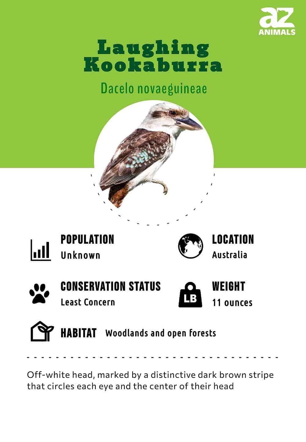 Il numero preciso di kookaburra in natura non è identificato. Sebbene non esista un conteggio esplicito di questi uccelli, la popolazione è considerata stabile. Lo stato di conservazione del kookaburra è “meno preoccupante”, senza alcuna grave minaccia di declino della popolazione al momento.